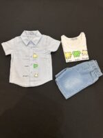 Be the first to review “3-Piece Baby Boy Outfit Set – Button Shirt, Printed Tank Top & Denim Shorts for Summer” Cancel reply