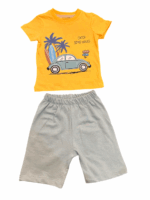 This comfy 2-piece set includes a soft yellow surf car T-shirt and elastic-waist blue shorts—perfect for beach days, playtime, and everyday summer fun.
