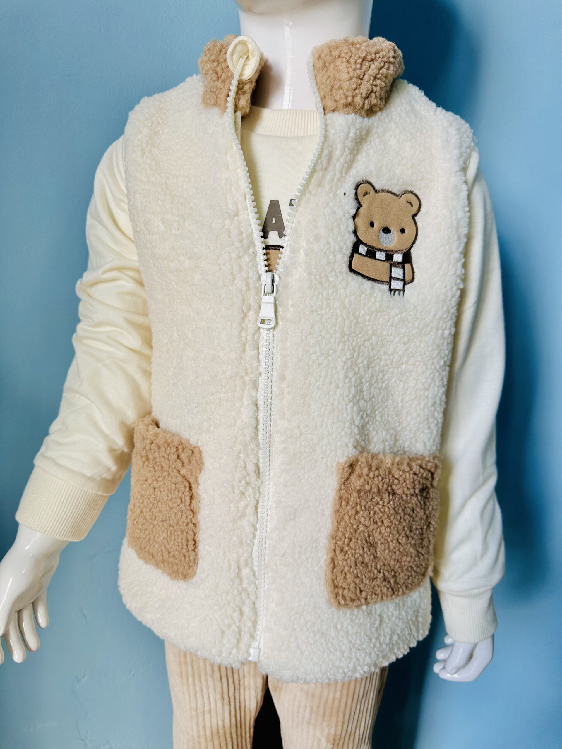 Cozy 3-Piece Toddler Winter Set – Fleece Teddy Vest, Warm Long-Sleeve Top & Ribbed Pants | Soft, Comfy & Perfect for Cold Weather