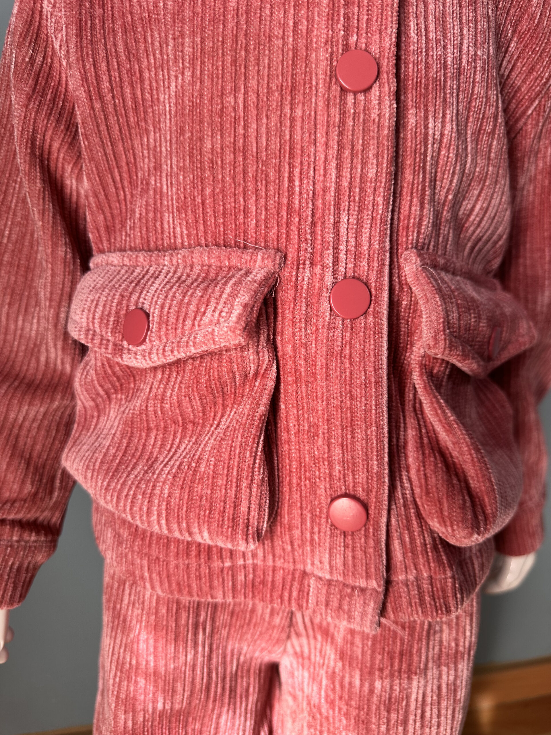 Cozy Pink Kids 2-Piece Winter Set – Soft Ribbed Jacket & Matching Pants, Warm Corduroy Outfit Perfect for Cold Weather, Stylish & Comfortable