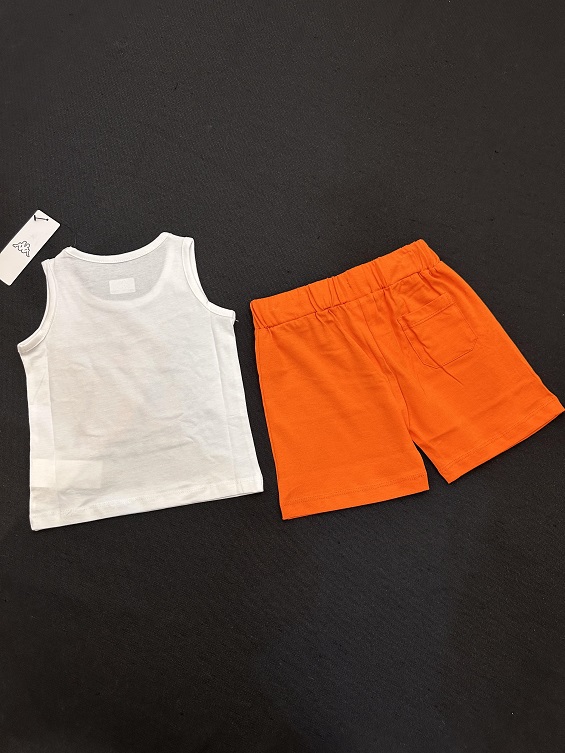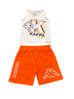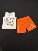 This sporty Kappa set includes a bold white tank top and bright orange shorts, made from breathable cotton—perfect for active kids, summer play, and outdoor fun.